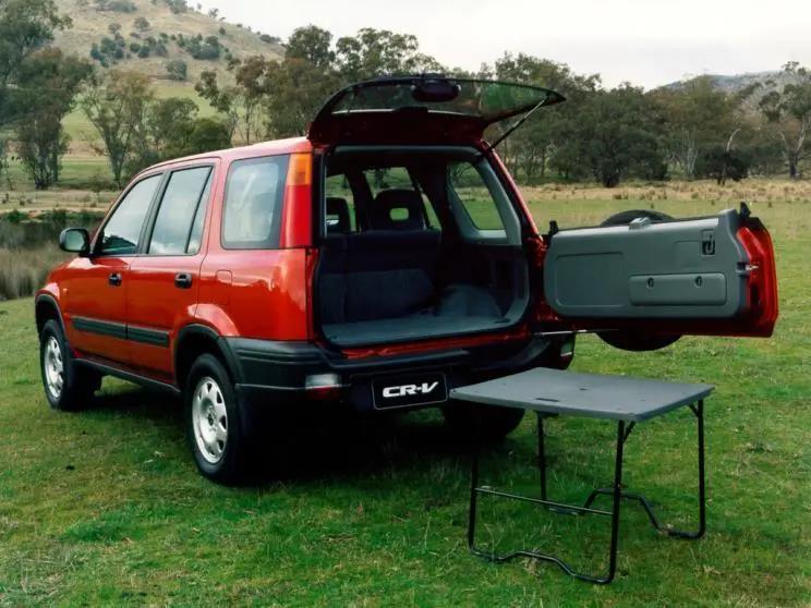 ▲初代CR-V不但車內(nèi)空間舒適,還能把后備箱蓋板變成折疊桌