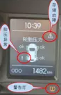 2、短按儀表上左按鍵,查找胎壓異常的輪胎,在儀表中間顯示屏上輪胎旁邊顯示“!”符號,說明該輪胎胎壓缺氣;找到對應(yīng)的車輪,并排除輪胎故障